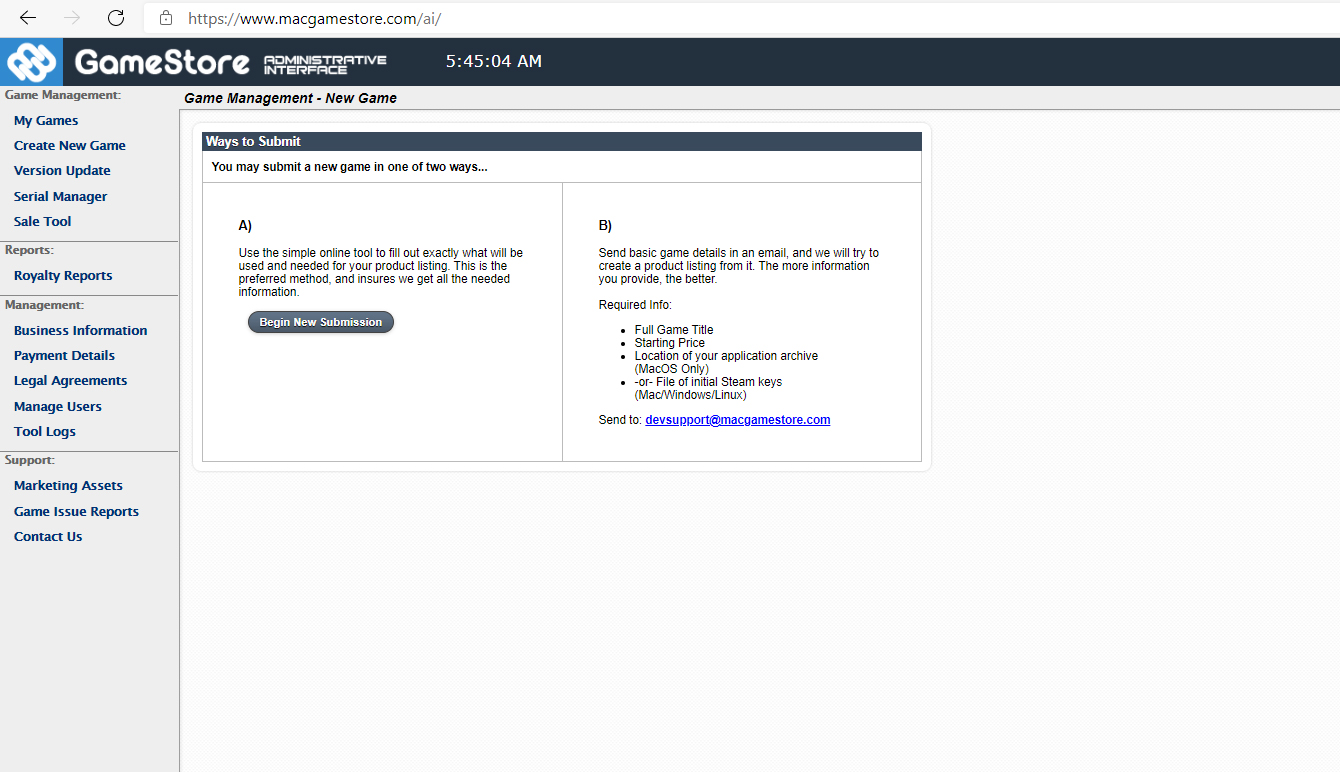 Publisher Account Request - https://www.macgamestore.com/information/Publishers/