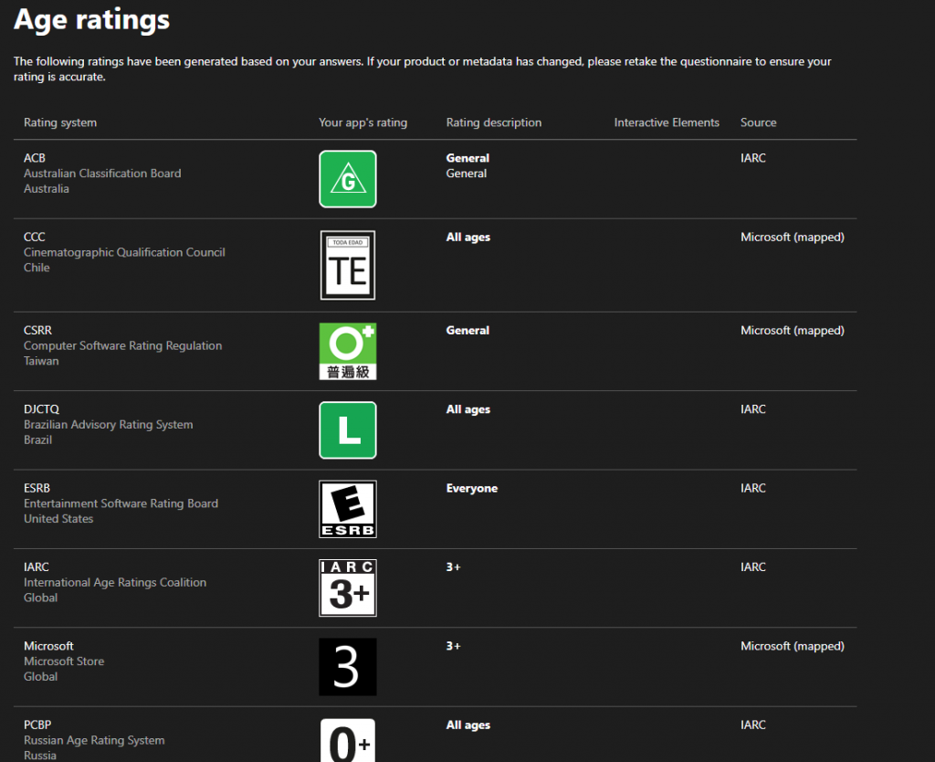Aqui você vai definir a classificação etária para seu jogo. Você responde o questionário sobre o tipo de coisas que seu jogo tem, tipo violência, sangue, entre outras coisas. Você responde tudo e clica em “Salvar e Gerar”, e ele automaticamente já gera a classificação para seu jogo.