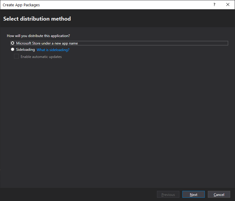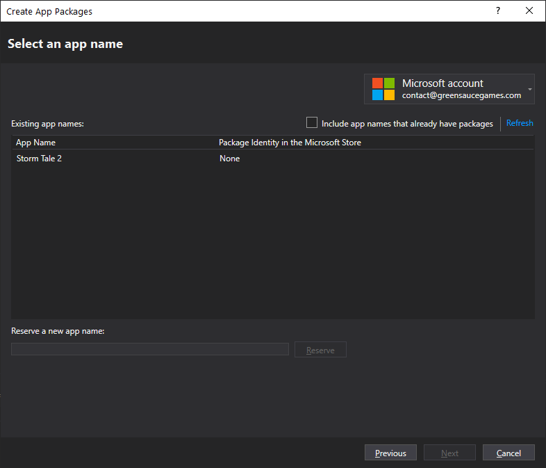 First wee need to define a name for your App/Game, that needs to be unique on Microsoft Store.