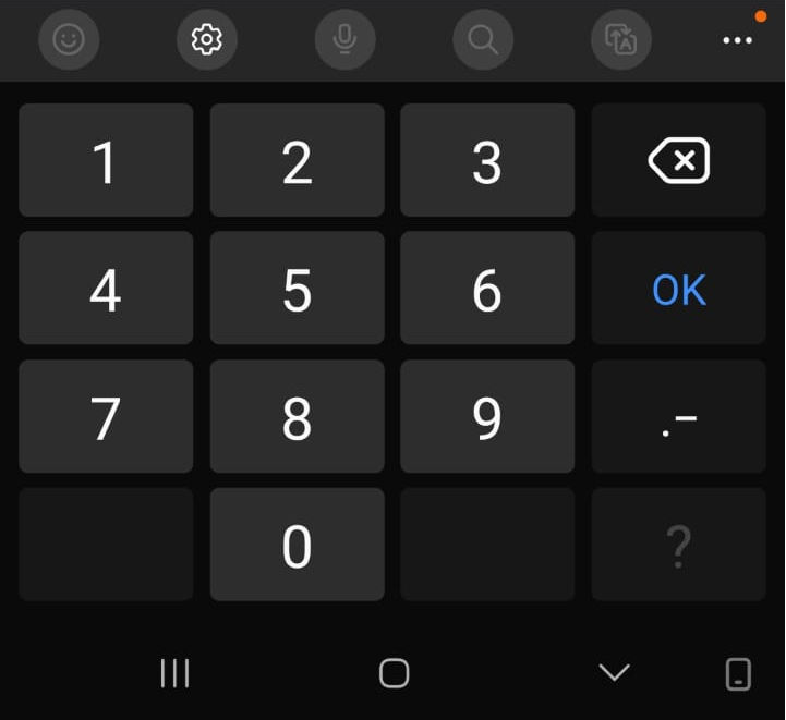 Samsung's default keyboard in numeric mode