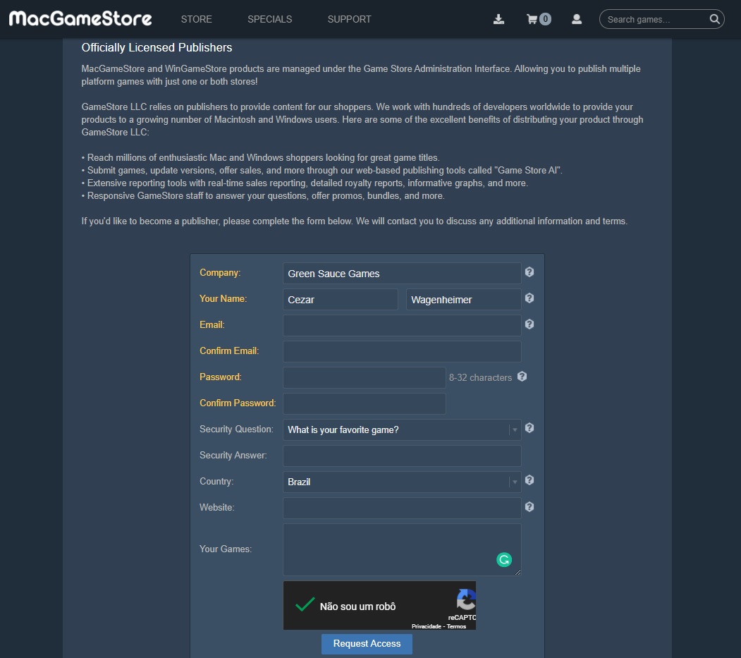 Solicitação de Conta de Editor - https://www.macgamestore.com/information/Publishers/