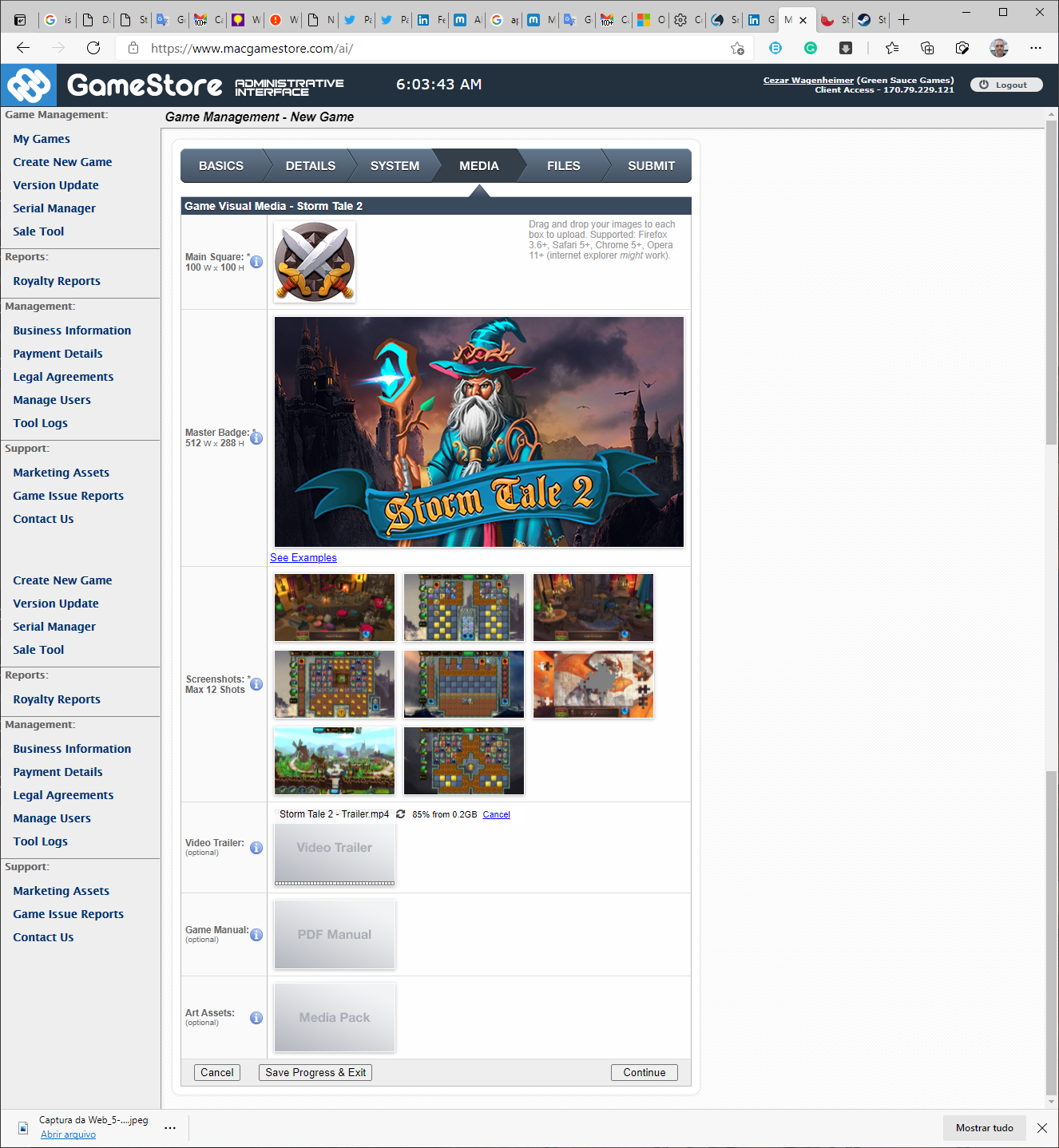 In the Media tab, the most important, images and videos to publicize your game.